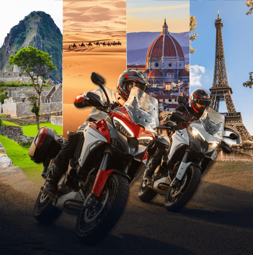 Somos la empresa líder en viajes en motocicleta alrededor del mundo. Con más de 10 años en el mercado, estamos comprometidos con la eficiencia, la calidad del servicio y la atención al detalle, asegurando que cada viajero viva una aventura auténtica y diferente. No realizamos viajes convencionales; nuestra prioridad es mostrar los lugares más increíbles de cada destino.